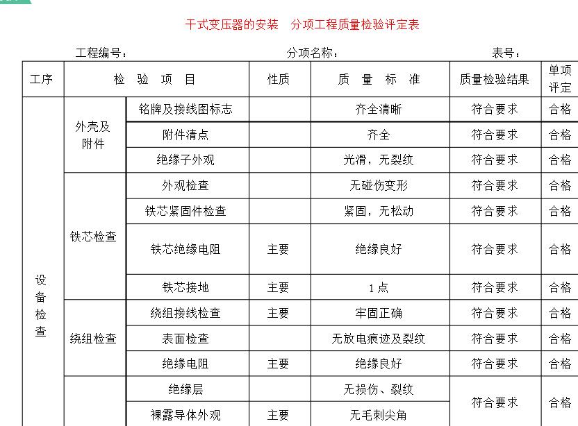 干式變壓器是一種無(wú)油工作的變壓器。普通干式變壓器的安裝更為重要。干式變壓器的安裝問(wèn)題需要引起更多關(guān)注。一般來(lái)說(shuō),應(yīng)該正確注意。干式變壓器安裝方法不斷提高安裝水平和容量,使干式變壓器更安全,更高效。對(duì)于干式變壓器安裝后還要進(jìn)行評(píng)估,普通公司如何評(píng)估安裝后?以下是常見的表格供您參考: